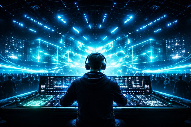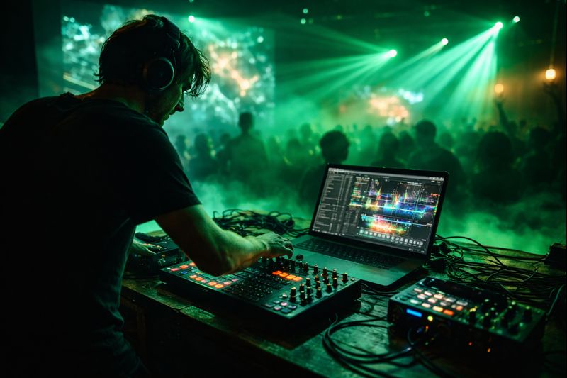Wir verbinden visuelle Echtzeit-Performances, Musik und technische Umsetzung zu stimmigen Gesamtkonzepten – von der Idee bis zum letzten Beat.